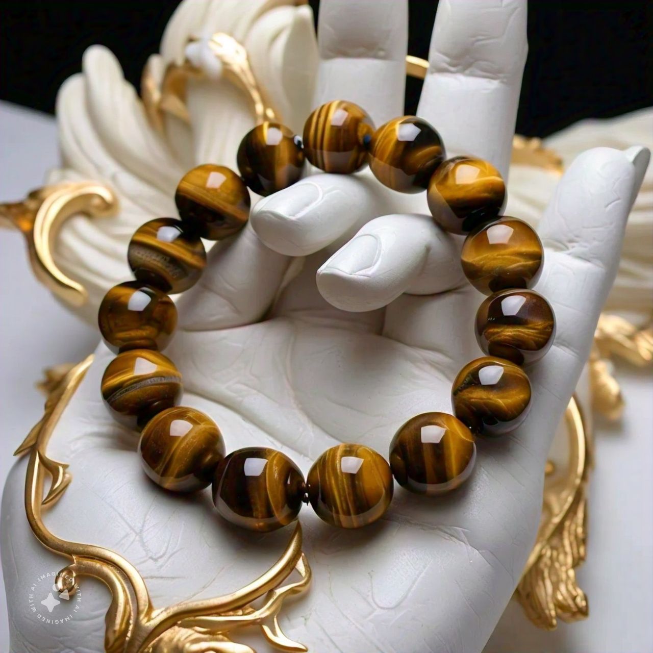 This stone carries a meaning of courage, strength, vitality, and power. The meaning is much like the persona of a great tiger in the wild. Wearing this stone could help block out bad energy and increase your internal power. When transferring your energy outward, wear a boosting crystal, such as a tiger's eye or black onyx, on your right hand. Wearing your bracelets on your right wrist can also assist you in shielding yourself from bad energy and improving your communication and speaking skills